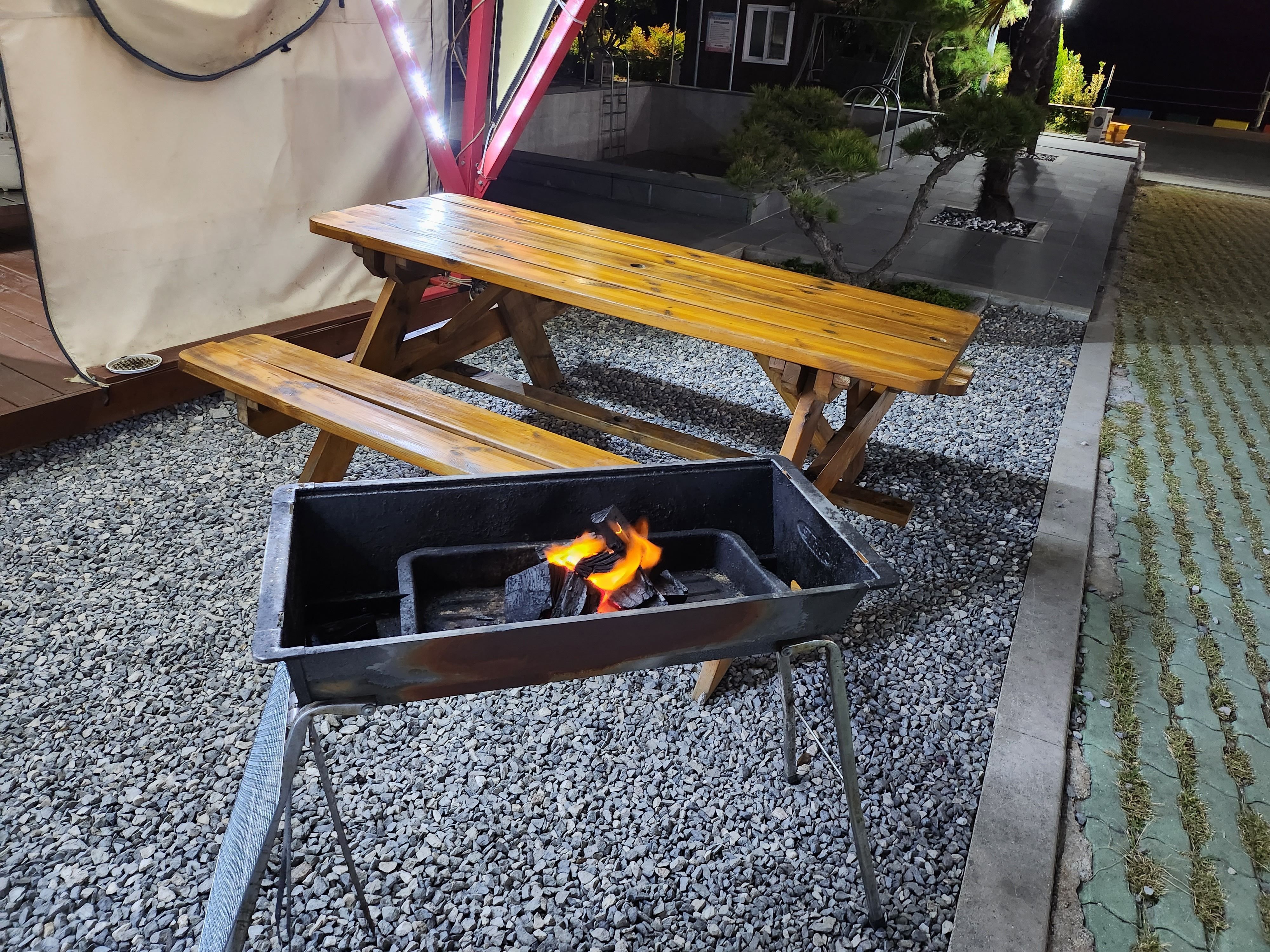 4살 10개월 애기들 데리고 갔는데 텐트내부 보일러 지글지글 끓고 또 깨끗하니 바닥에 풀어두고 잘 먹고 잘 쉬다 가요