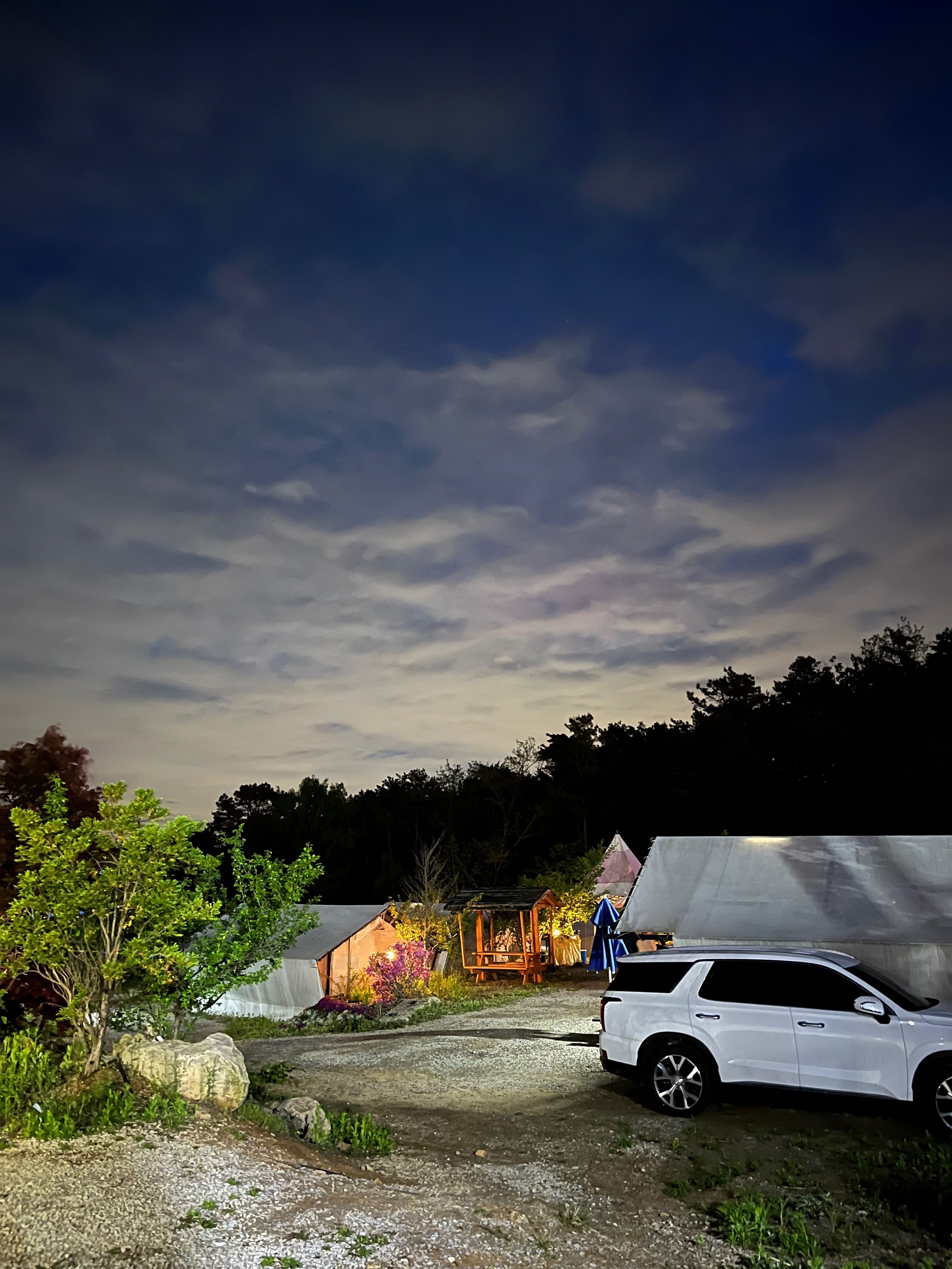 |  모처럼 일요일 휴무날 편안하게 좋은 공기 맡으며 쉬고 왔습니당👍 주차공간도 좋고 바베큐할 수 있는 공간 넉넉합니다. 글램핑이 처음이었지만 첫 기억이 좋게 흘러가네요!! 아 맞다 팡팡이 있는데 잘 찾아서 뛰어노세요.. 그러면 글램핑에서 키우는 강아지 2마리가 올겁니다! 2025년 09월 26일 |