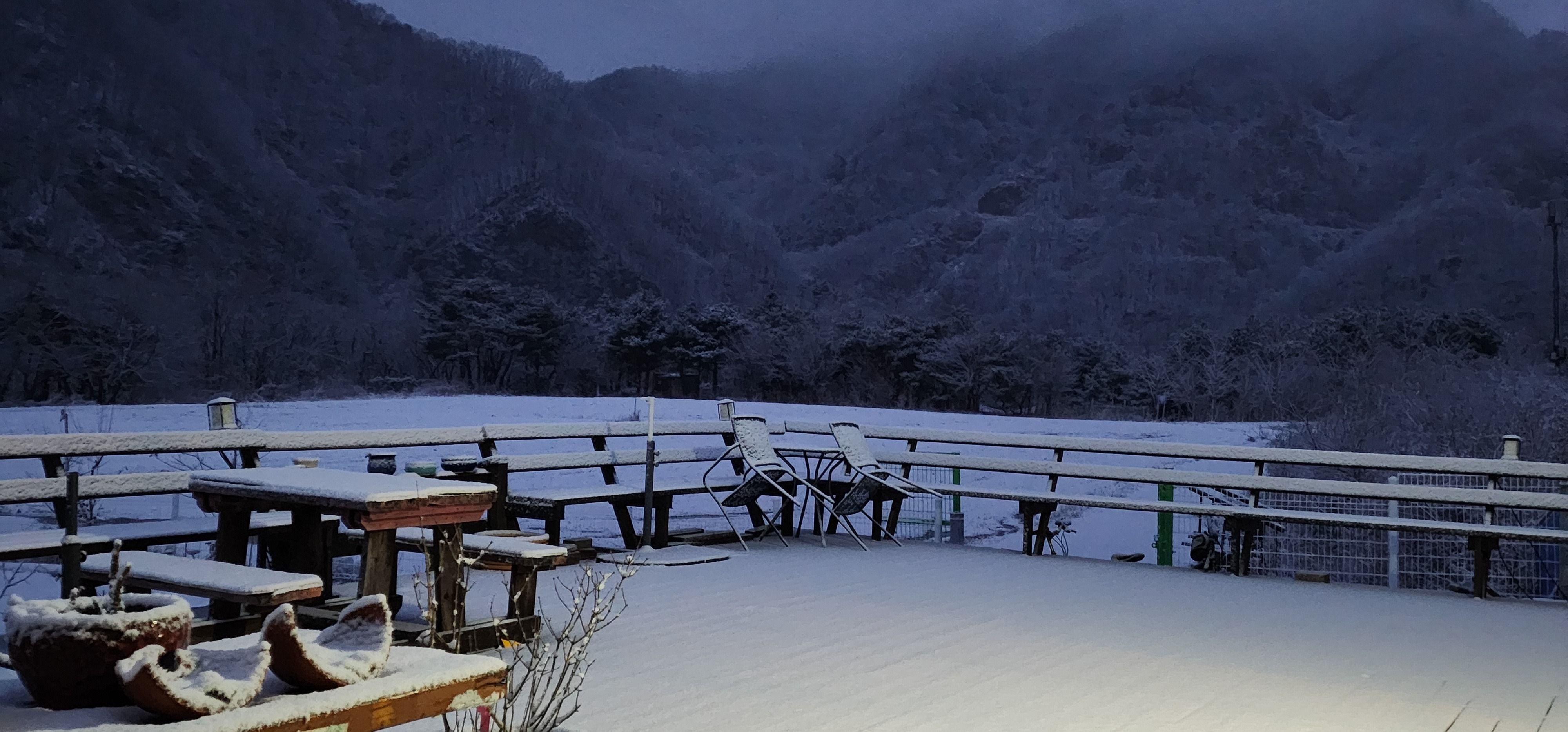 뜻밖에 눈이 내려 설경이 너무 아름답고 뷰가 좋았어요.