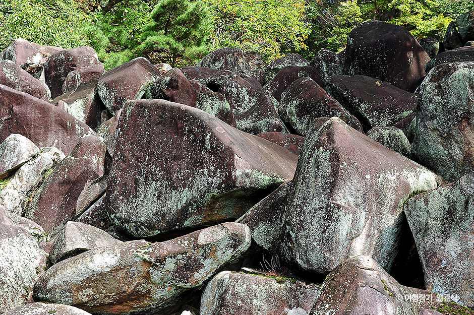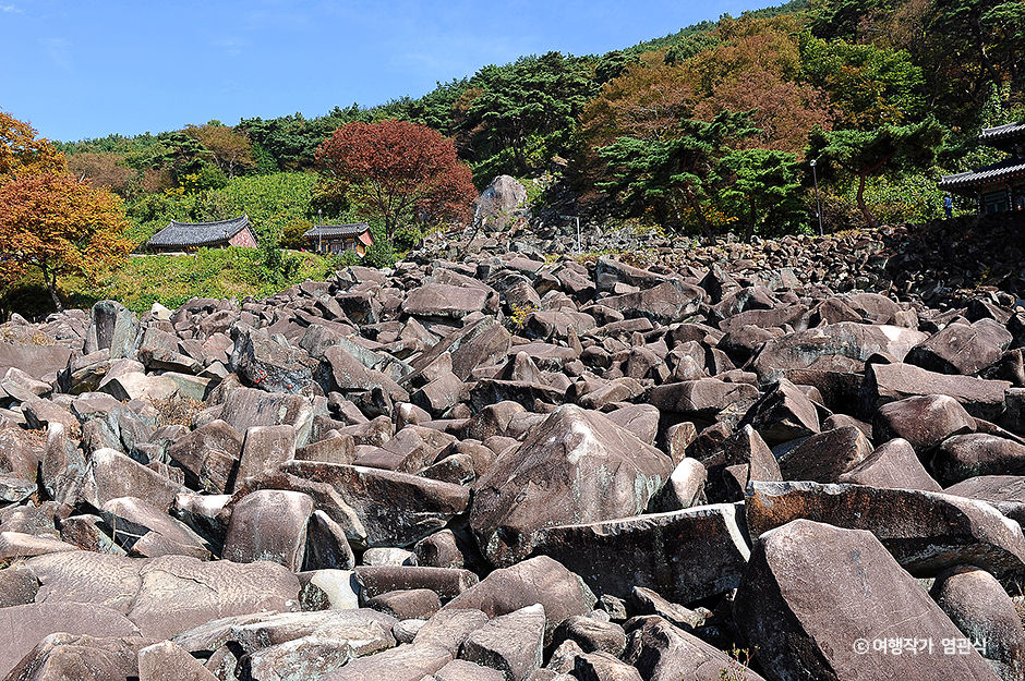 밀양 3대 신비로 분류된 만어사 경석은 두드리면 종소리가 나는 신비한 바위다. 천연기념물 제528호로 지정된 만어사 경석은 ‘만어사 어산불영’이라고 불리기도 한다. 돌이 무너져 내려 쌓인 돌너덜 지대인 만어사 경석은 어떤 연유로 종소리가 나는지 지질학자와 전문가들도 아직까지 풀지 못한 신비를 간직하고 있어 여행객들의 호기심을 자아내게 한다. 만어사 경석은 만어사에서만 볼 수 있는 독특한 바위지대로 가야 수로왕 시절 창건됐다고 알려진 만어사의 이름을 짓게 된 연유도 이 오래된 전설에서 비롯되었다. 만어사 경석은 마치 견고한 요새처럼 만어사 일대를 빙 둘러싸고 있다. 바위의 크기는 각각 다르지만, 색깔은 검거나 회색 등으로 동일하고, 손에 쥘 수 있는 돌멩이로 두드린 자국을 때리면 마치 길고 긴 여운을 남기는 듯한 맑은 종소리를 들을 수 있다.