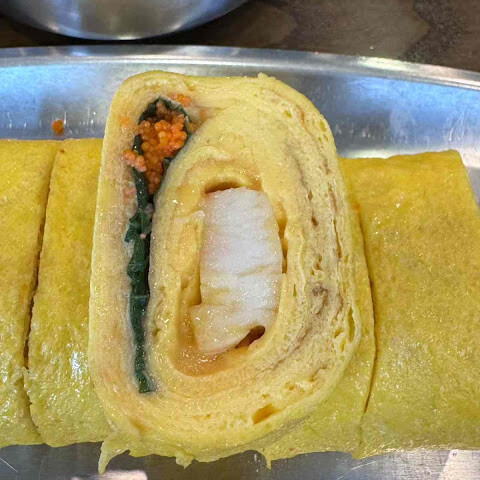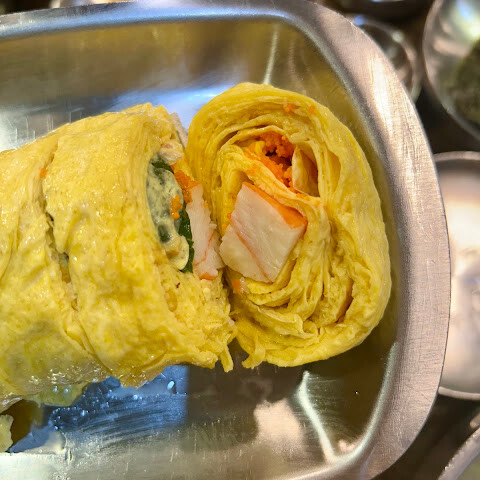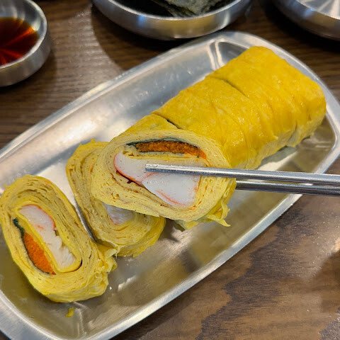 계란말이도 엄청 컸어요! 이런 식당이야말로 한국 음식의 진수를 제대로 느낄 수 있는 곳 같아요.