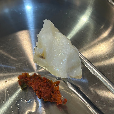 이렇게 맑은 대구탕에 "깜짝 놀랄 만한 맛"이 숨겨져 있을 줄 누가 알았겠어요? 붉은 국물의 강렬한 시각적 효과와는 달리, 이 국물의 매운맛은 혀끝에서 바로 느껴지는 신선한 매운맛입니다. 다양한 한국산 고추로 끓인 육수는 처음에는 상쾌하지만, 끝맛은 적당히 화끈거려 목을 자극하지 않으면서도 속을 따뜻하게 해줍니다. 마시면 마실수록 그 맛에 푹 빠지게 되죠. 대구는 비린내 없이 깨끗하게 손질되어 살이 뼈에서 쏙쏙 떨어질 정도로 부드럽고, 무엇보다 뼈가 거의 없어 부담 없이 삼킬 수 있습니다. 한 입 베어 물 때마다 생선 본연의 단맛과 국물의 매콤한 향이 어우러져 진정한 만족감을 선사합니다.