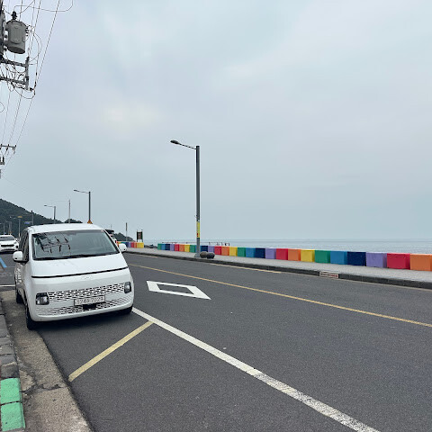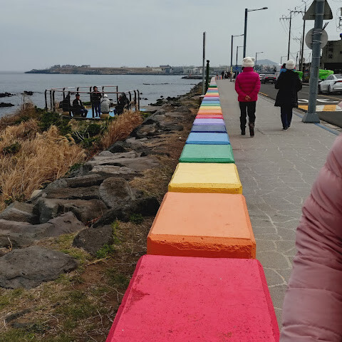 바다가 가까워 무지개빛 연석이 귀여운 곳이었어요 🩷