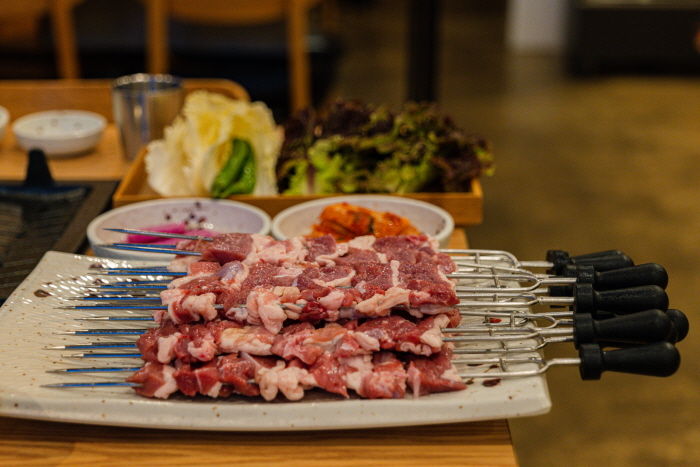 불향과 숯불맛이 나는 오리 회전구이구이다.