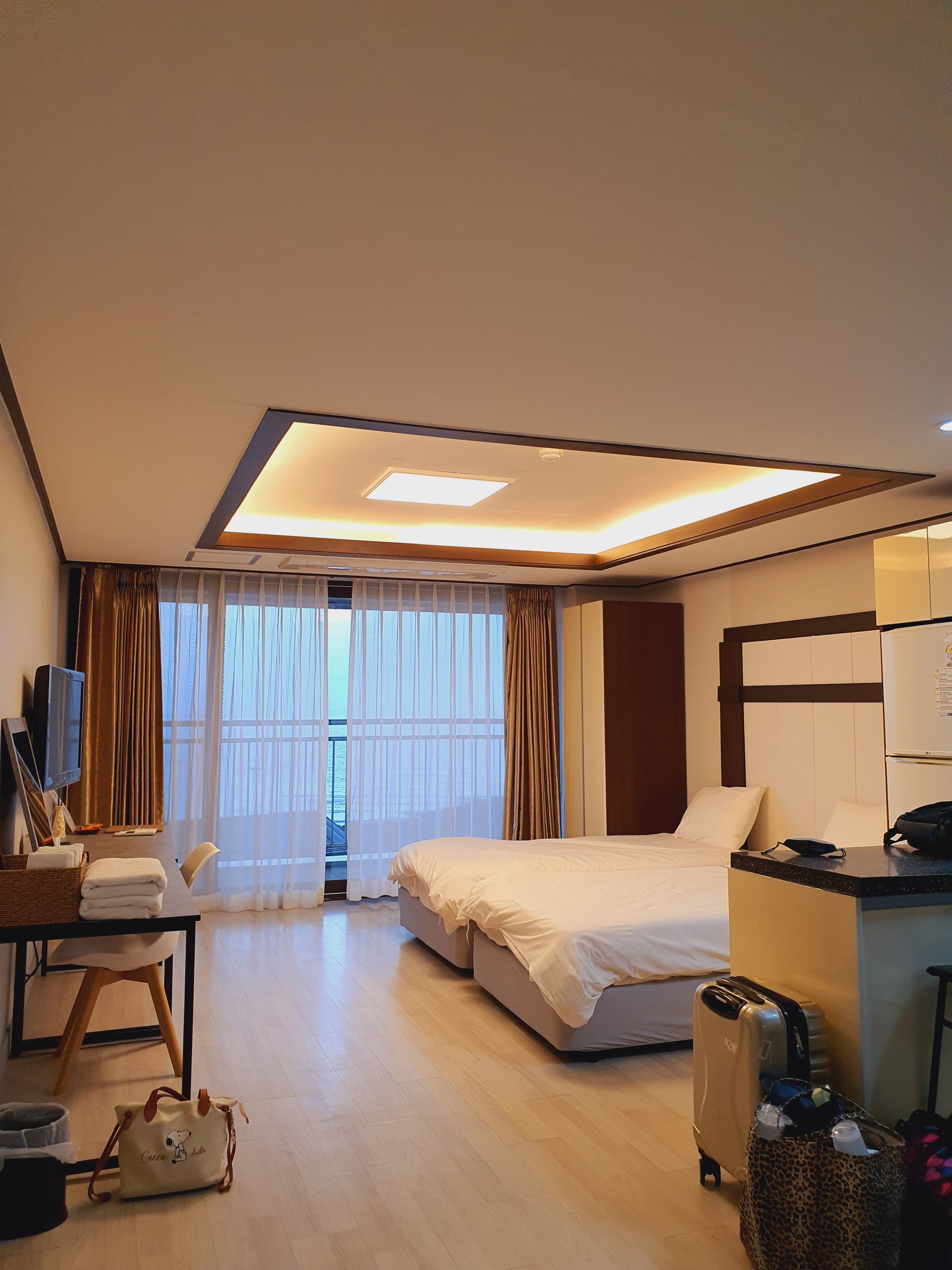 뚜벅이 비추요 아니 렌트했어도 비추요 주변에 편의점 하나 없어서 당황함 건물도 너무 노후했고 침구도 별로 청결하지 못한편 객실내 소음 심한편 진짜 고립돼서 바다만 보고싶다면 가세오