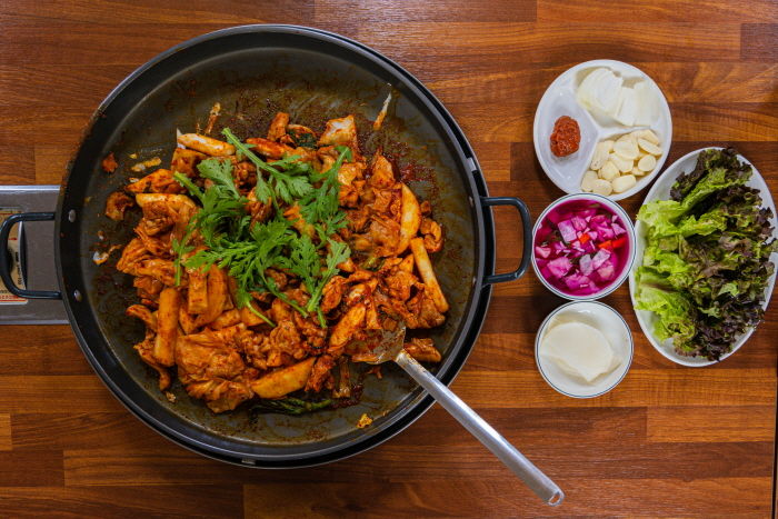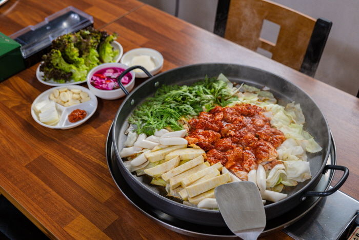 타 업장과는 달리 닭갈비 외에도 삼계탕, 사골육개장, 송이갈비탕, 꼬막비빔밥 등 다양한 식사 메뉴를 맛볼 수 있다. 실내 좌석이 넓어 단체 이용도 가능하다.