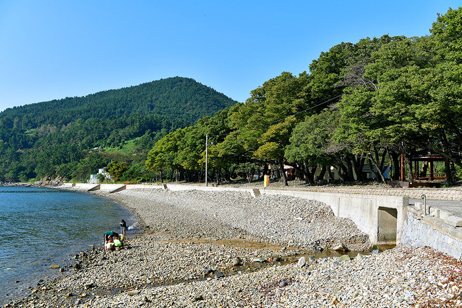 구미동 해수욕장은 모래가 아닌 올망졸망한 크기의 자갈이 500m쯤 펼쳐져 있고, 시원하게 자란 활엽수림이 자갈밭을 감싸고 있어 안온한 분위기를 준다. 주변에 식당을 겸하는 민박집이 여러 개 있다. 편의 시설들이 있어 불편하지 않으며 텐트를 치고 야영을 하는데도 어려움이 없다. 자갈밭을 지나 해변을 따라가면 갖가지 형상을 한 바위들이 잇따라 서 있다. 아름다운 쪽빛 바다로 이름이 높은 남해도 안에서도 조용하고 깨끗한 해수욕장으로 첫 손에 꼽히는 곳이 바로 구미동 해수욕장이다. 모래밭 대신 고운 자갈이 가득 깔려 있어 색다른 운치가 있고 이 자갈밭 뒤로는 아름드리 활엽수가 울창하게 드리워져 있다. 해안가 방파제를 돌아 남쪽으로 조금 내려가면 제법 그럴싸한 기암 지대가 나온다.