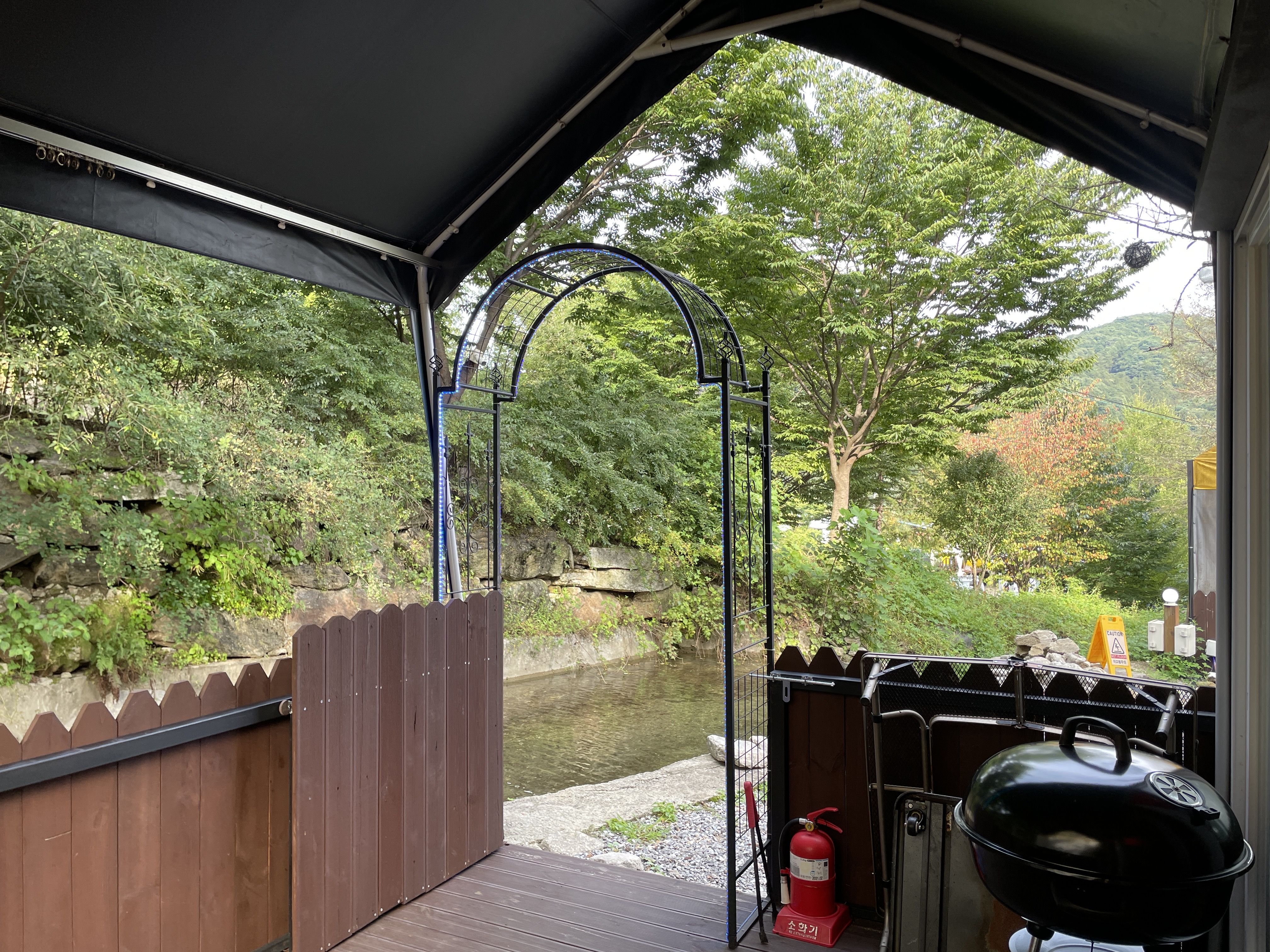 수성방은 맨 끝에 위치해있어서 차도 바로 옆에 주차해둘 수 있고, 사람들이 많이 다니지 않아서더 좋았습니당 야외에 추가로 있는 테이블이랑 캠핑의자쪽에는 나무 울타리도 쳐주셔서 더 프라이빗한 느낌이었어요 ~