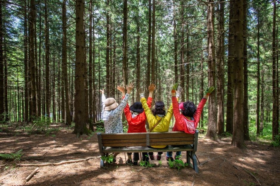 국민의 숲 트레킹 코스는 사람의 생체리듬에 가장 좋다는 해발 700m 대관령 자락 (구)대관령휴게소 인근에 조성된 트레킹 코스이다. 산허리를 감싸는 흙길을 따라 걷다보면 전나무와 주목, 독일가문비나무, 잣나무, 일본잎갈나무, 자작나무숲이 나타나고 곳곳에 야생화도 가득피어 자연과 하나됨을 느낄 수 있다. 특히 피톤치드가 풍부한 침엽수가 주종을 이루는 길로 이곳을 걷기만 해도 몸과 마음이 치유되는 트레킹 코스이다.