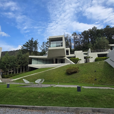 홍천에 위치한 고급 펜션입니다. 11/1~1일 투숙을 했는데 방은 따뜻하게 관리가 되고 스파도 좋습니다. 야외 수영장은 아쉽지만 운영이 되지 않습니다. 실내 수영장은 사용가능합니다. 펜션앞 냇가도 좋쿠요. 바베큐는 모여서 2층 카페 주위에서 진행이 됩니다. 바람이 많이 불면 바베큐는 진행하지 못하고 가스버너를 사용하게 되네요. 주위에 가게가 없으니 필히 숙박동안 필요한 식량? 술? 들을 미리 충분하게 준비하시는게 좋을듯 싶습니다. 그래도 힐링하기 좋은 펜션입니다. 시간 여유가 되면 홍천중앙시장에서 총떡을 사먹는걸 추천 드리며, 장원막국수에서 식사하는것도 추천드립니다. 물막국수는 최고이네요