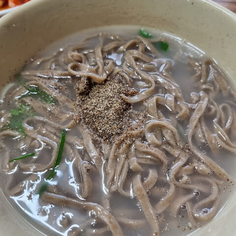 칼국수는 정말 맛있었고, 지역 메밀로 만들었어요. 간단하지만 특히 추운 날에는 정말 맛있어요!