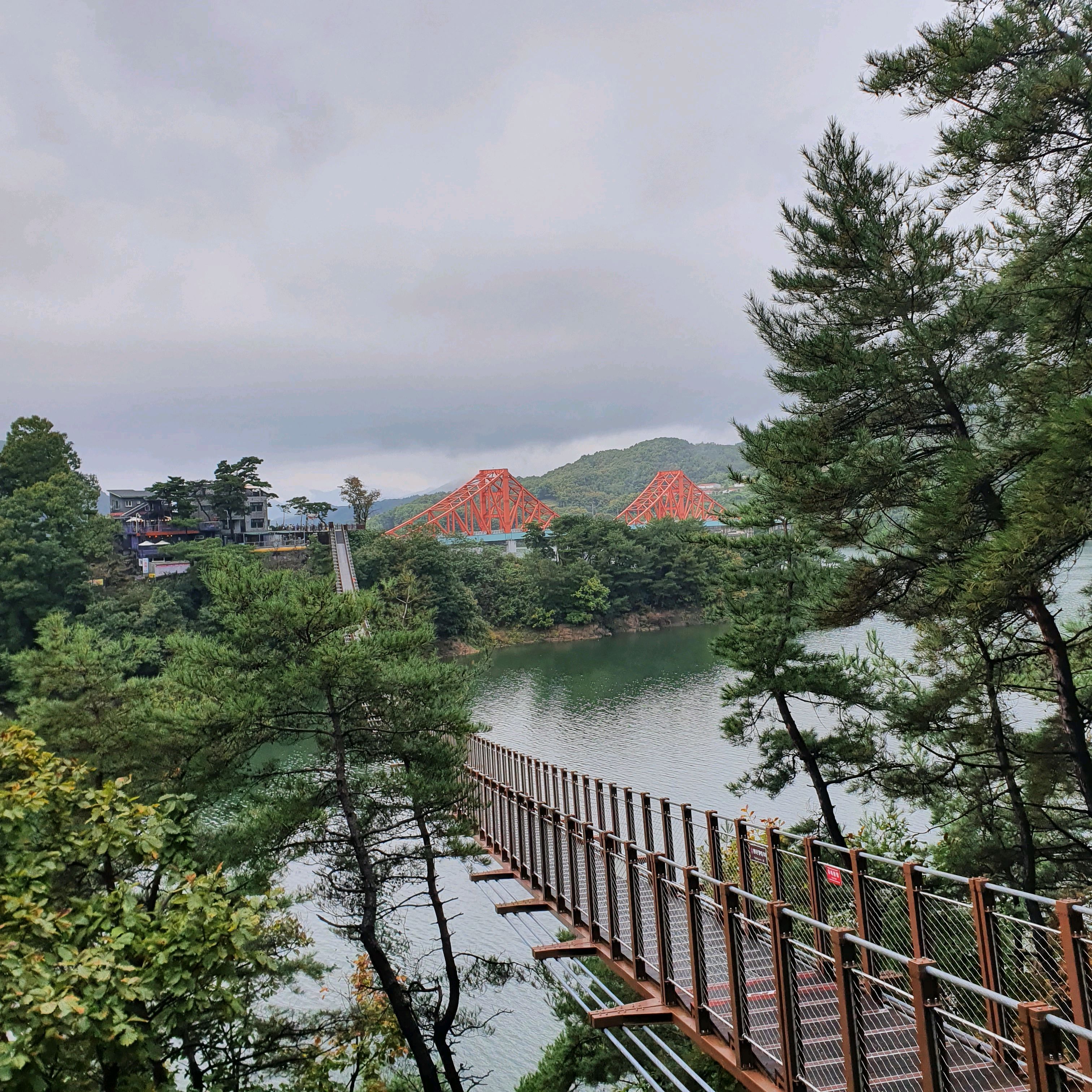 출렁다리가 멀리 있지 않아 아이들과 함께 방문하기 좋았습니다. 산책로도 험하지 않고 사람도 붐비지 않아서 가장 좋았어요 산과 호수를 바라보며 걷는 산책로는 힐링의 산책로였고 제천에 방문하게 되면 한번쯤 더 거닐고 싶네요. 너무 길지 않아 잠깐 다녀올 수 있었던 점이 좋았습니다.