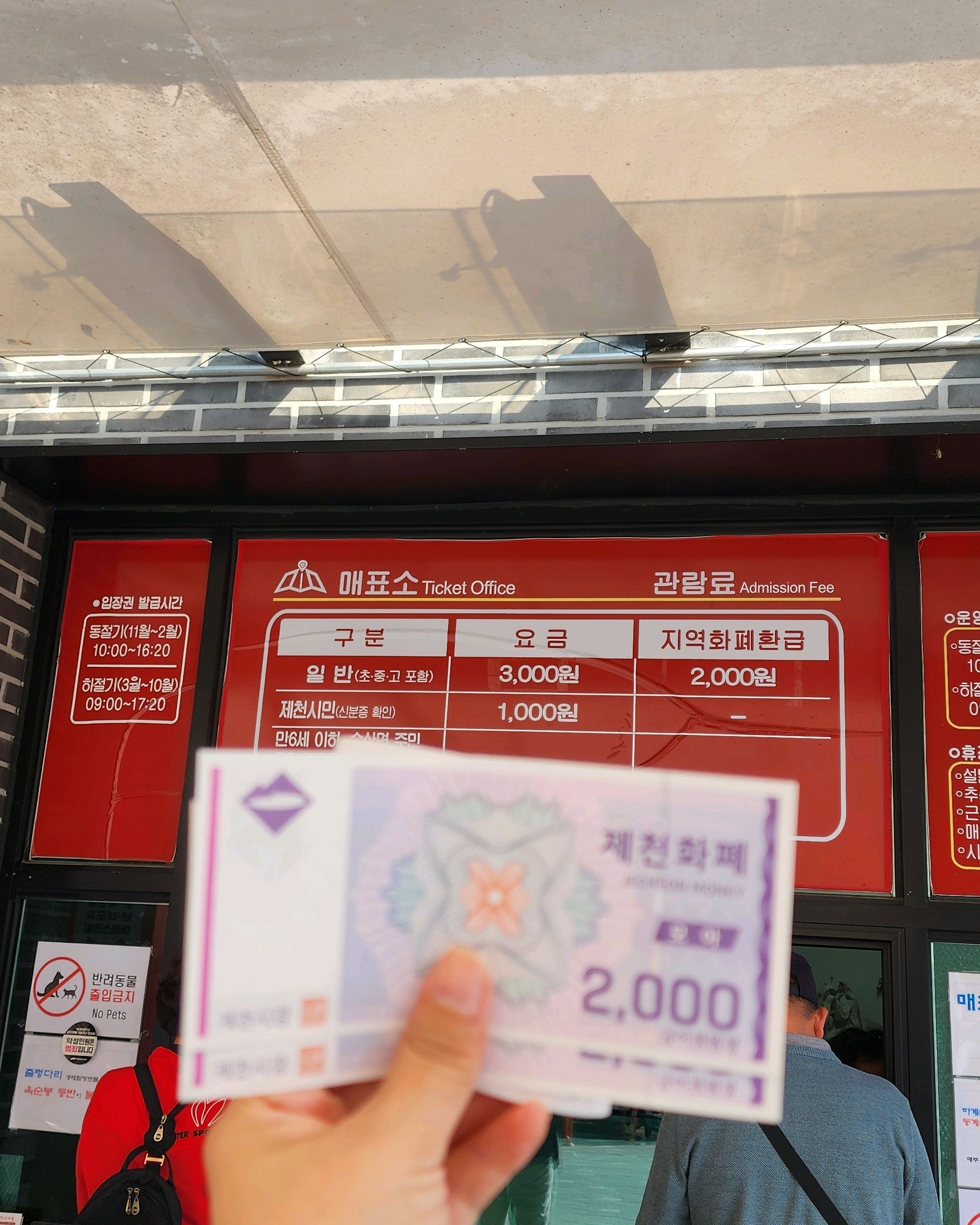 관람료 3,000원 중 2,000원은 제천시 지역화폐로 교환해 준다.