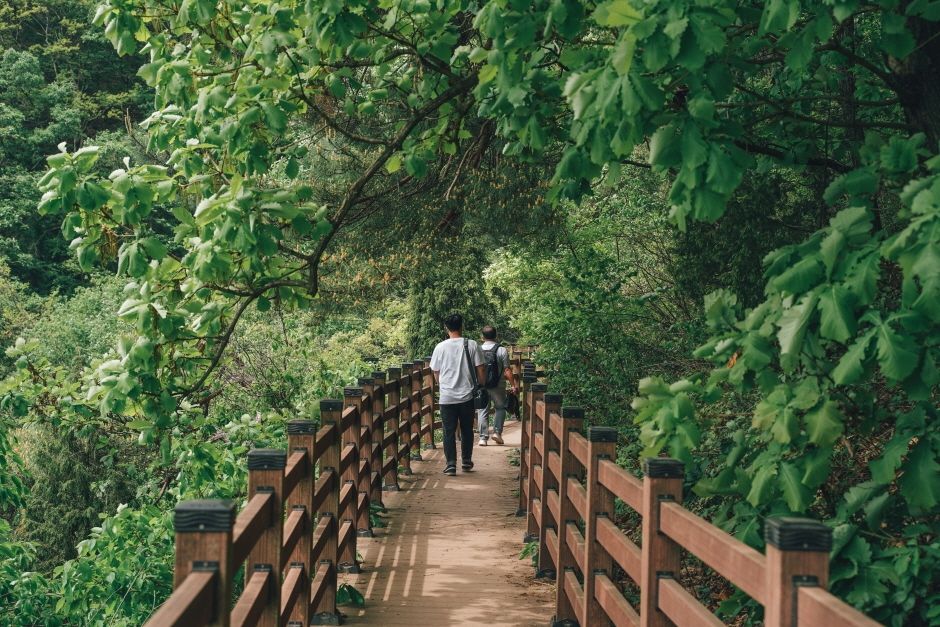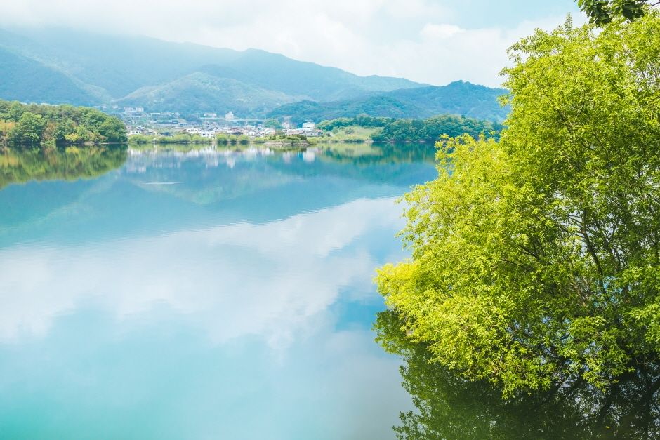 전북 완주는 BTS가 다녀간 후 관심을 받기 시작해 비교적 최근에 알려진 여행지이다. 완주 내에 한적한 여행코스인 구이저수지 둘레길은 모악산과 경각산 사이에 자리 잡은 구이 저수지 주변을 산책하는 코스이다. 깨끗한 물과 산의 풍경은 사계절 내내 언제 찾아도 아름답다. 구이 저수지 둘레길은 수변 데크길과 수변길, 숲길이 번갈아 진행되어 지루하지 않게 끝까지 둘러볼 수 있다. 중간중간 포토존이 있고 산책길 내내 마음껏 자연을 누릴 수 있게 조성되어 있다.