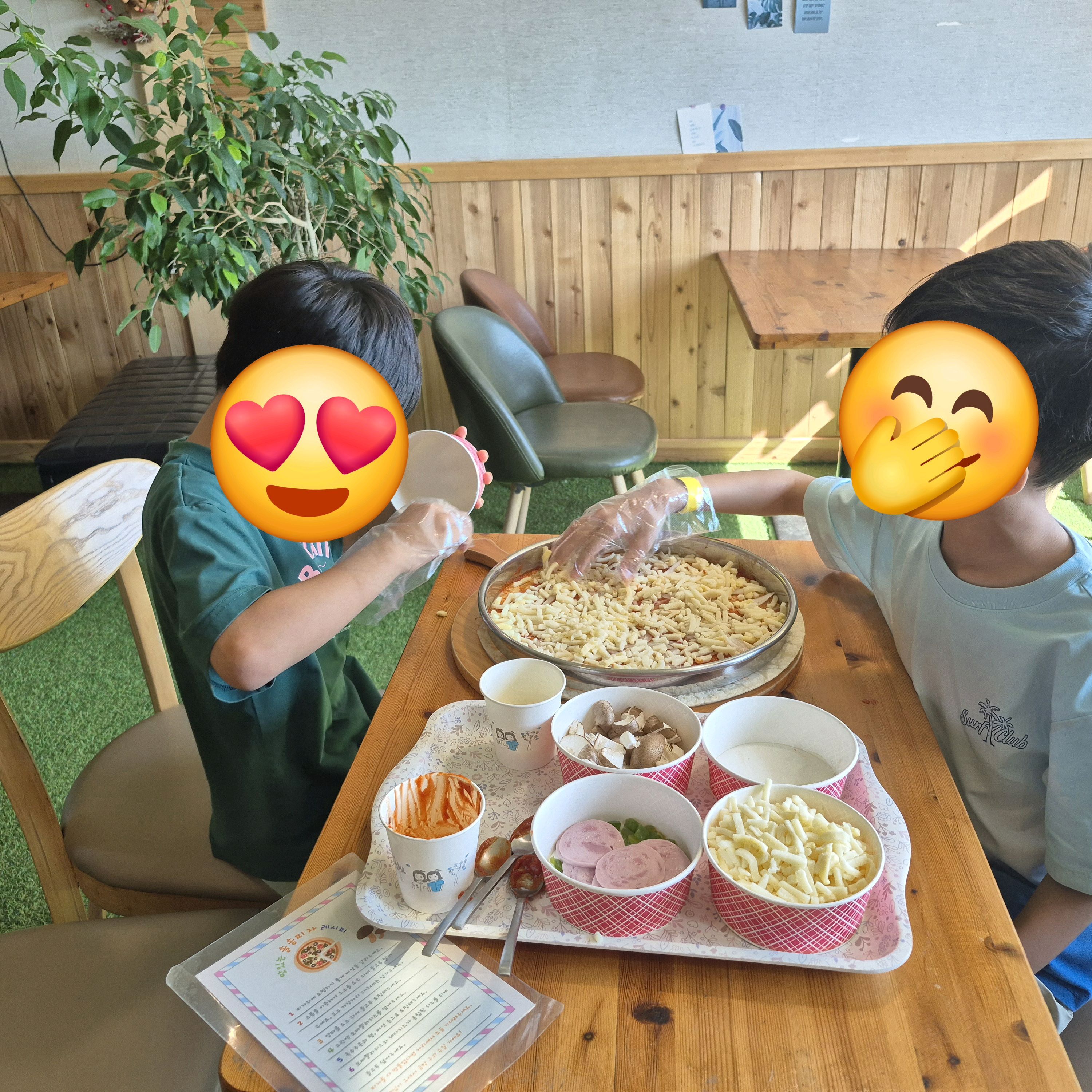 농장 안에는 다양한 체험거리+동물들이 잘 준비되어 있어서 아이와 함께 여기저기 둘러보며 알차게 보낼 수 있었어요. 특히 피자 만들기 체험이 인상 깊었는데, 재료와 도구들이 미리 잘 세팅되어 있어서 기다림 없이 바로 시작할 수 있었고, 생각보다 5분 만에 피자가 완성돼서 뜨끈뜨끈하고 맛있게 잘 먹었습니다🍕✨