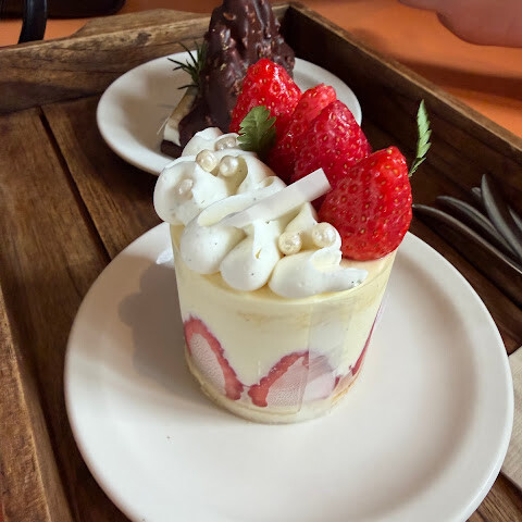 좋은 분위기, 블랙 커피는 주유소 커피 맛이 나요. 디저트는 복잡함이 부족하고, 지나치게 달콤하고 코스트코 베이커리 디저트와 같은 맛이 납니다. 전반적으로 추천하지 않습니다.