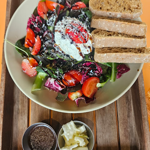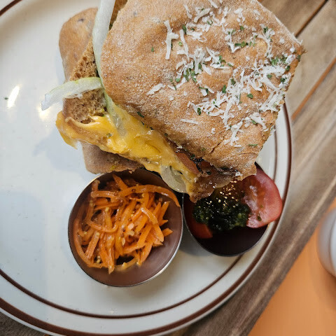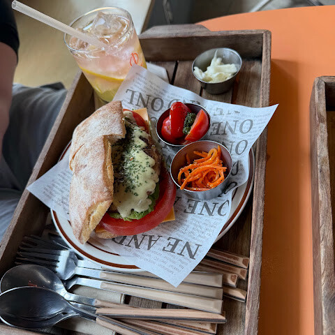 대형 카페겸 식당. 수제 버거와 음료 하나 주문. 버거는 육즙과 안에 구성이 잘 어우러져서 맛있았음. 당근인지 감자인지 알수 없는 토핑이 바삭함을 더해줌. 같이 나온 감튀는 위애 뿌려진 특제 마요와 치즈가 잘 어울렸음. 음료 백일몽은 블루베리 + 베리 에이드 맛