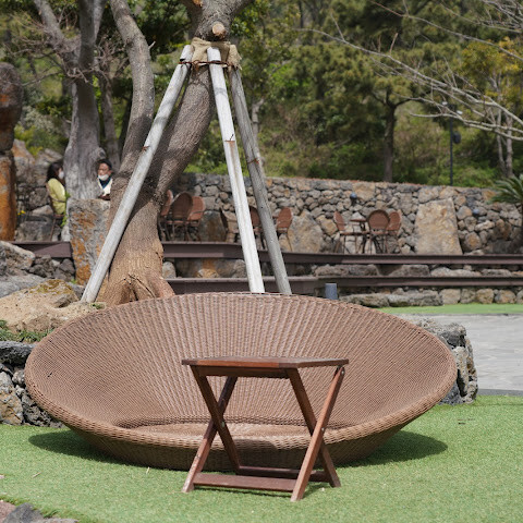 아마도 제주에서 몇안되는 위치의 카페인듯함. 뒤로는 산방산, 앞으로는 제주 해변가와 용머리 해안뷰가 있어 이곳은 카페라기 보다 관광지 같은 분위기임. 넓고 다양한 쉴곳이 있고 주차장이 넓어 편리함. 가족끼리 와도 좋은 분위기임