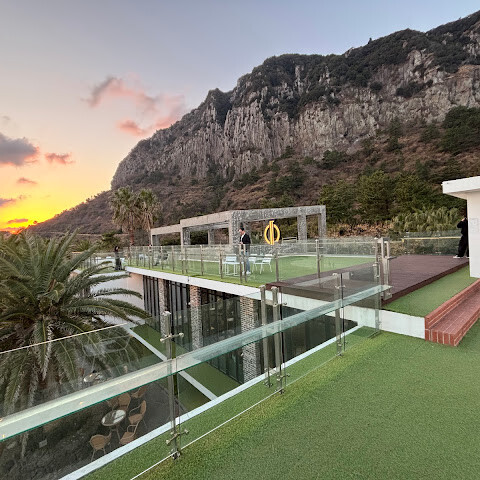 여기 산방산 뷰 카페인데 정말 뷰가 장난 아닙니다. 물론 고급 카페라 음료 커피 가격이 엄청 비싸긴 하지만 돈이 아깝지 않은 뷰를 감상할 수 있습니다. 얻어 듣기로는 중국 자본으로 만들어진 카페라고 합니다.