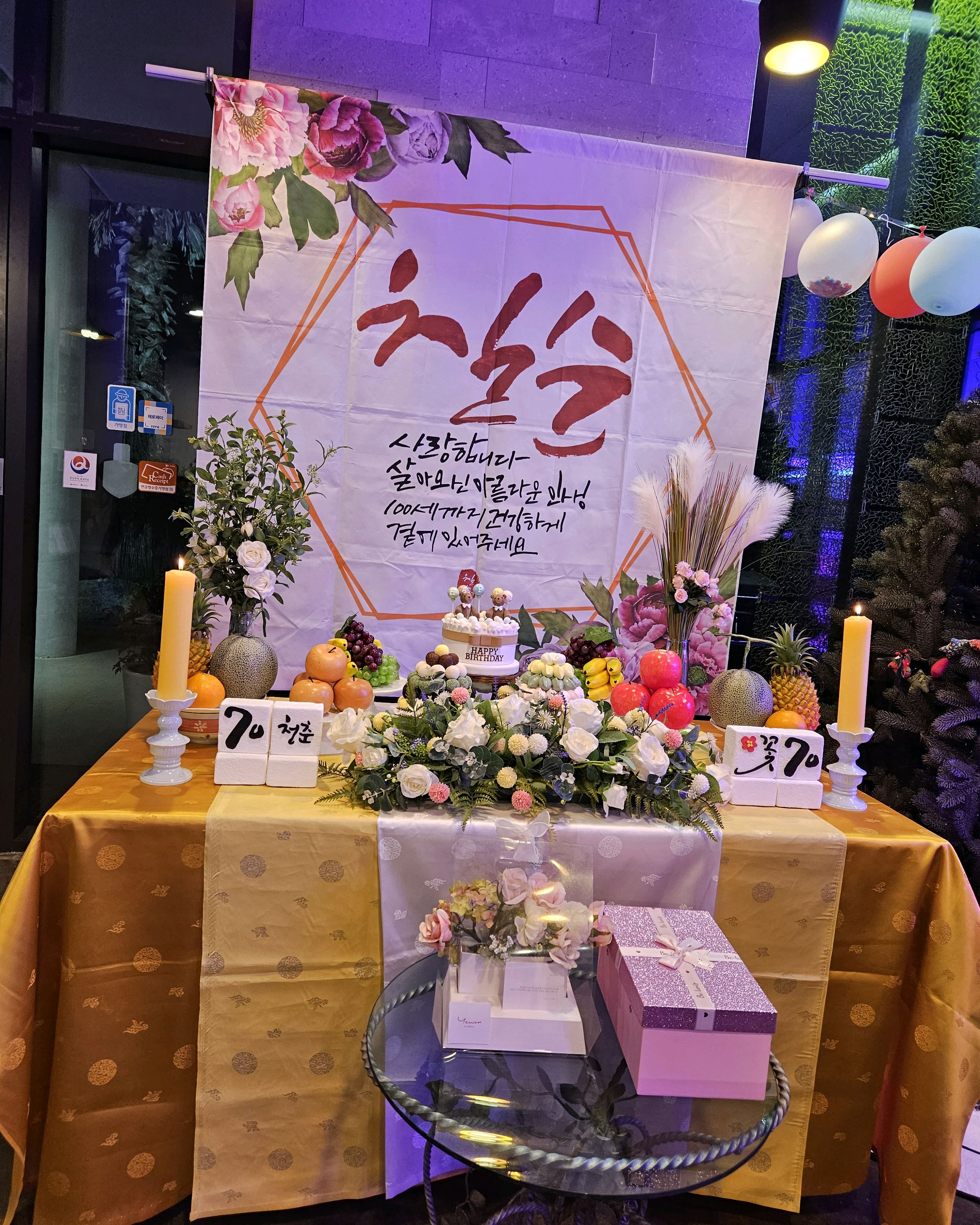너무친절하시게 설명도 잘해주셨고 칠순기념파티세팅도 예뻤구요~특히 다양한한복들과 예쁘게사진찍을수있도록