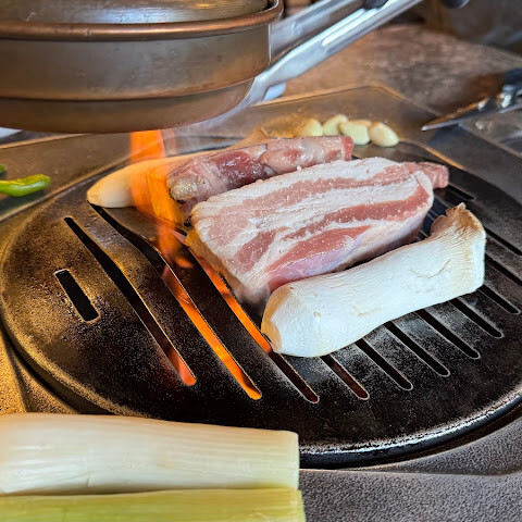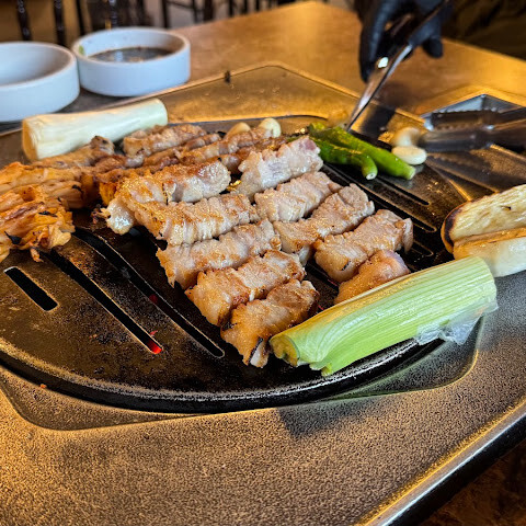 우연히 이 바비큐 식당을 발견했는데, 삼겹살이 정말 맛있었어요! 2인 세트 메뉴를 시켰는데 가격도 괜찮았고, 심지어 직원이 직접 고기를 구워주기까지 했어요 🥰. 따로 시킨 냉면도 정말 맛있었어요. 한국 냉면은 역시 맛있네요!