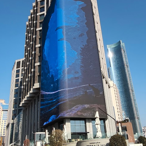 지나쳐 보았습니다만, 외벽의 디스플레이로의 3D영상이, 깨끗하고 좋았습니다.