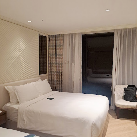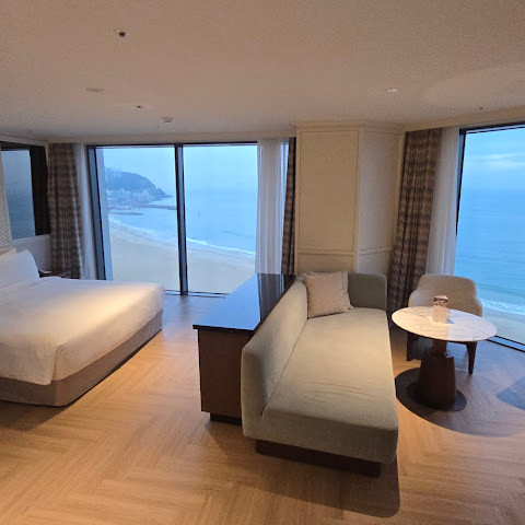 그랜드 조선 부산의 트윈 디럭스룸에서 멋진 시간을 보냈습니다. 객실은 매우 깨끗하고 밝으며 넓었습니다. 넓은 욕실과 멋진 바다와 수영장 전망이 펼쳐졌습니다. 위치도 최고였습니다. 지하철역까지 걸어서 금방 갈 수 있고, 주변에는 노점과 현지 맛집들이 즐비했습니다. 편안함과 편리함을 모두 갖춘 호텔로 강력 추천합니다!