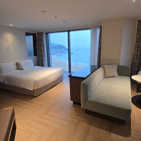 이 호텔은 정말 아름답고, 중심부에 위치해 있으며, 해변 바로 앞에 레스토랑과 바가 즐비합니다. 길 건너편에는 주요 푸드 카트와 상점들이 있고, 양쪽으로 5분만 걸어가면 엑스 더 스카이와 멋진 수족관이 있습니다. 패밀리룸에는 세탁기와 건조기가 무료로 제공되며, 편의점도 있고, 수영장도 훌륭합니다. 한국 여러 도시를 여행하며 가장 기억에 남는 순간이었습니다.