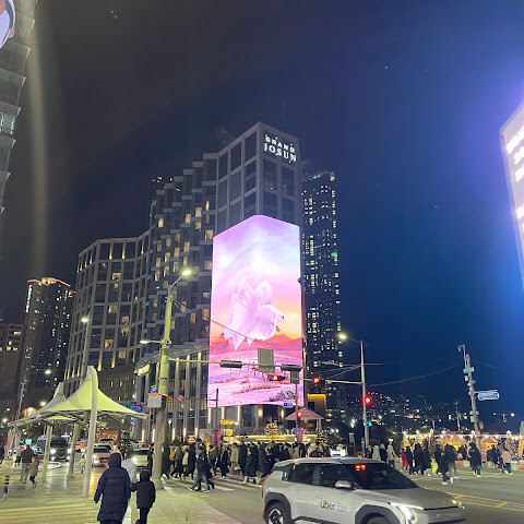 지나쳐 보았습니다만, 외벽의 디스플레이로의 3D영상이, 깨끗하고 좋았습니다.