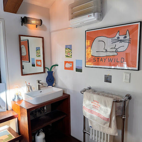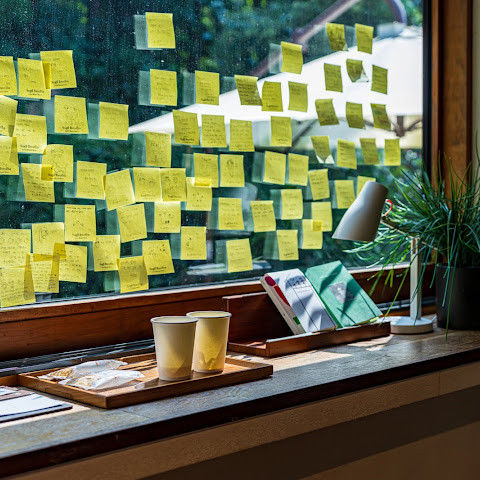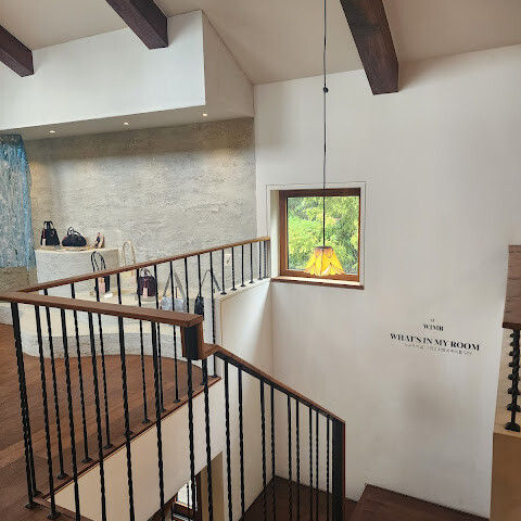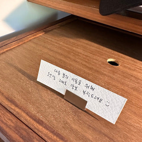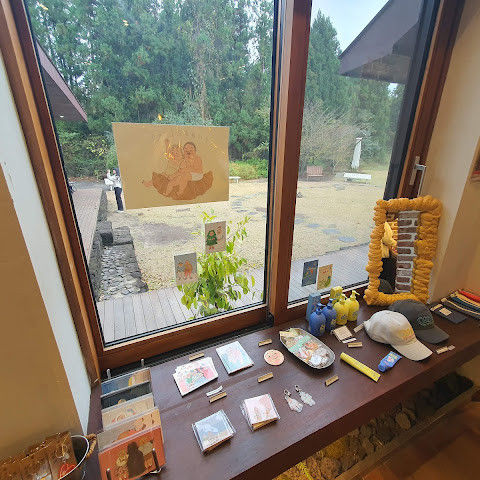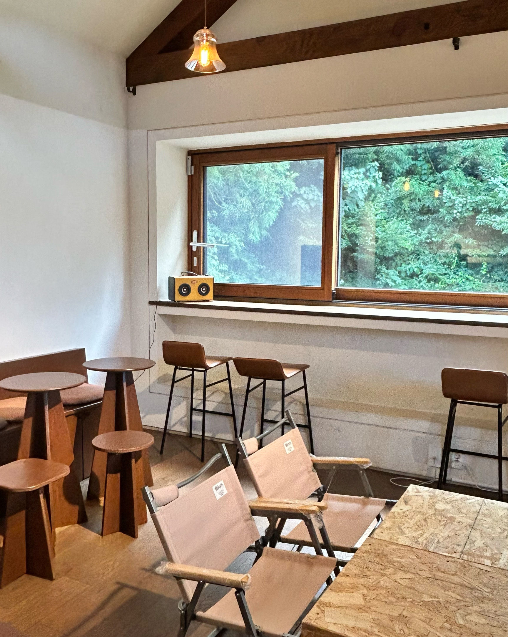 숲속에 자리한 작은 오두막 같은 공간이라 들어서는 순간부터 공기가 다르더라고요. 따뜻한 햇살이 창으로 들어오고, 잔잔한 음악이 흘러나와서 전시를 보기 전부터 마음이 편해졌어요.