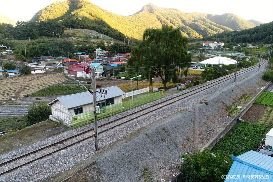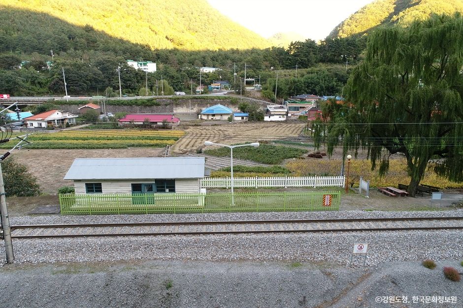 하고사리역은 영동선로의 역사(驛舍)로 1966년 건립되어, 1967년 9월 1일 간이역 영업을 개시하였다. 마을 주민들이 역사 건립의 필요성을 느껴 자발적으로 건립한 역이다. 현재는 열차가 서지 않는 폐역이다. 구조는 맞배형태의 지붕에 벽체는 비닐 판벽이다. 대합실의 내부가 고미반자로 되어 있어 다른 간이역과 차별되며, 출입 또한 전면 진입이 아닌 이 지역의 민가 진입 방식인 측면 진입 방식을 띄고 있는 것이 특징이다. 등록문화재로 지정된 간이역 중 팔당역과 함께 규모가 가장 작은 역 중 하나이다. 2007년 국가등록문화재로 등록되었다.