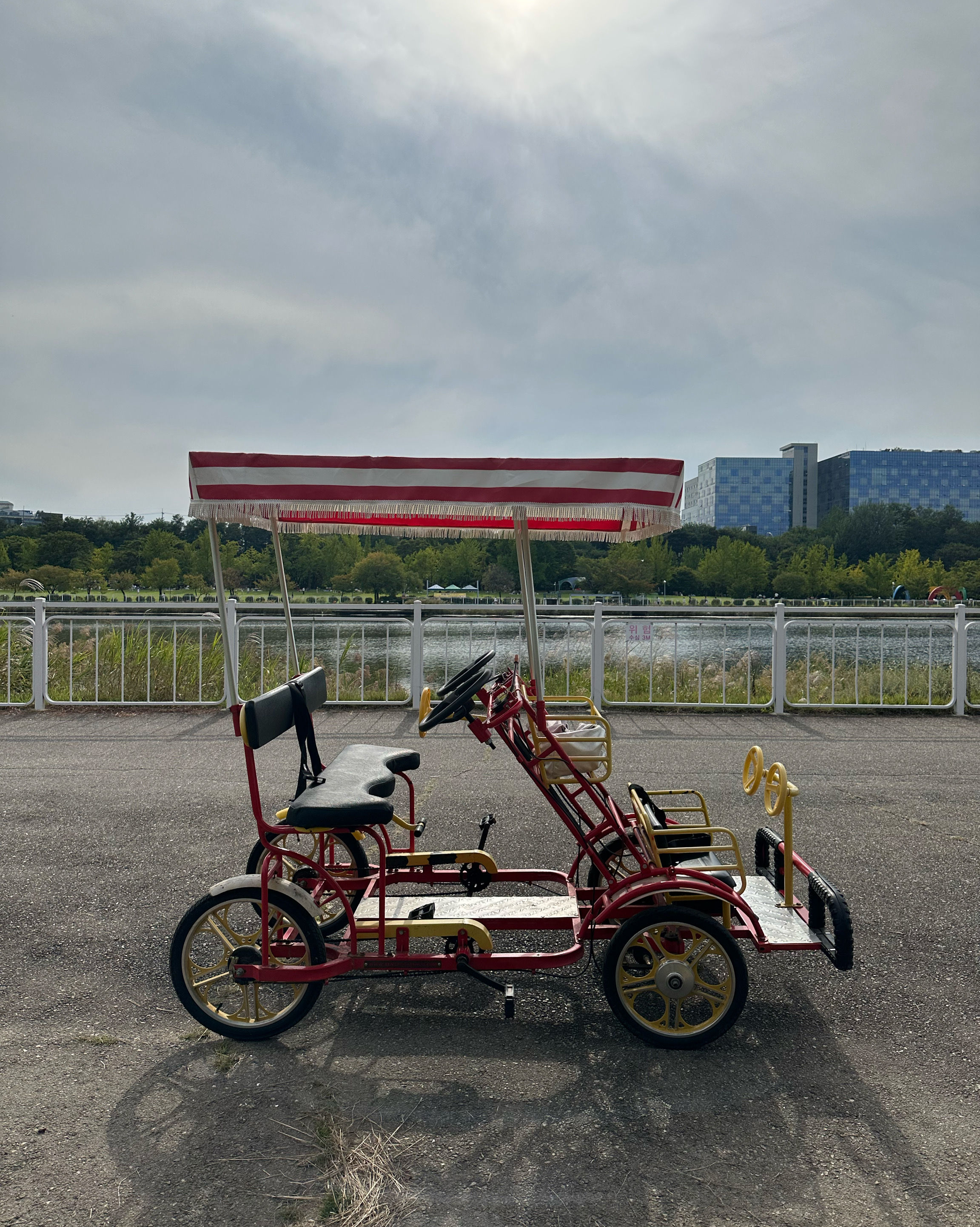 자전거 은근 힘든데요. 선선할 때 대여해서 타면 바람도 불고 시원해서 가벼운 유산소운동도 되고 좋아요. 경정공원 한바퀴 돌기위해서는 무조건 한시간 대여하세요~