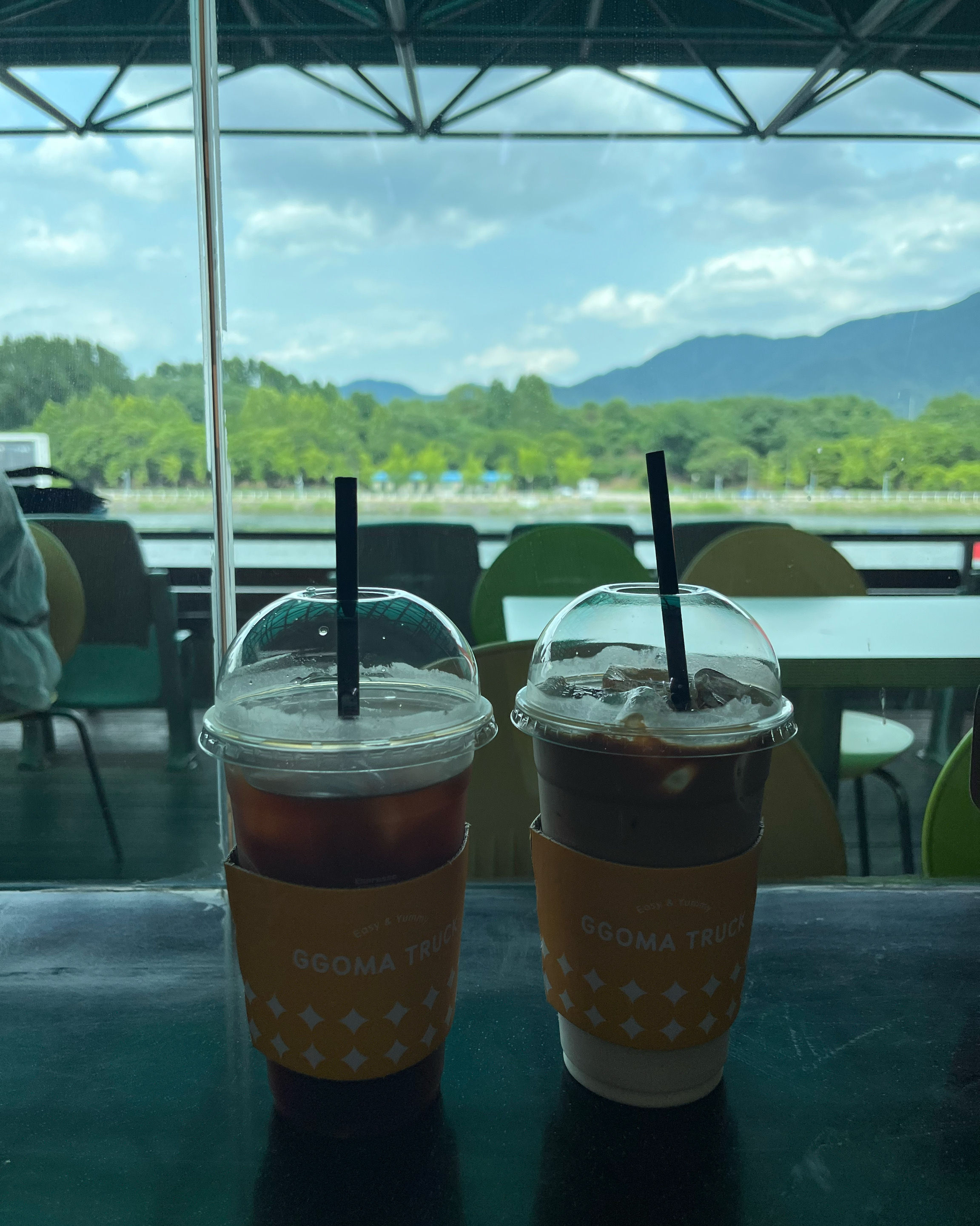 하남푸드페스타 왔다가 더위를 피해 들어왔어요.나가는길에 2층에 있고요.에어컨나와서 좋네요.화장실도 있고요.앞에 조정경기장도 보여서 좋구요~날씨 더울때 들어오면 좋을꺼같아요.