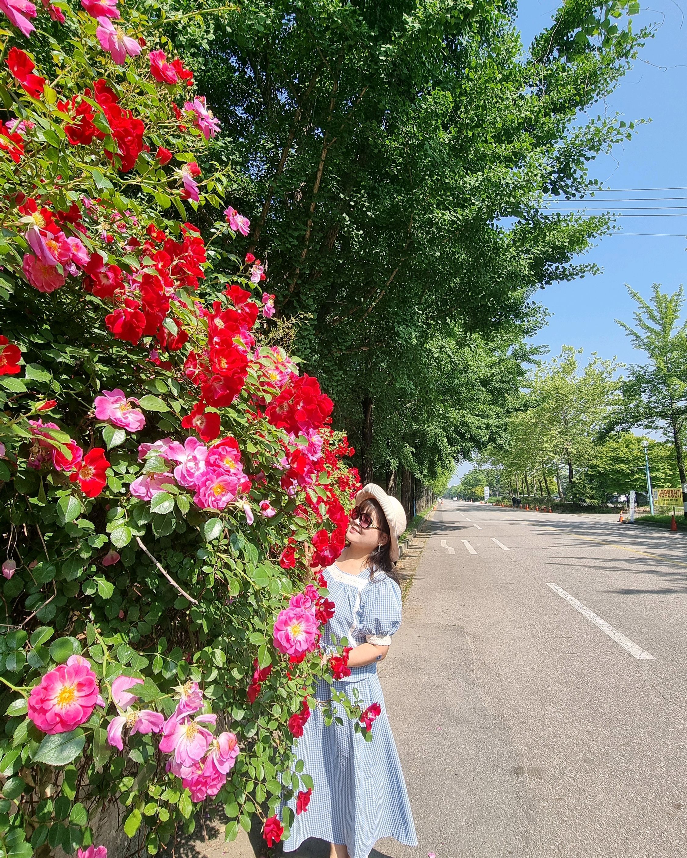 봄에는 겹벚꽃이 예뻤는데 지금은 양귀비꽃을 가꾸어 놓았어요.후문쪽으로 와야 볼수 있어요.안으로 조금 들어와야되구요.