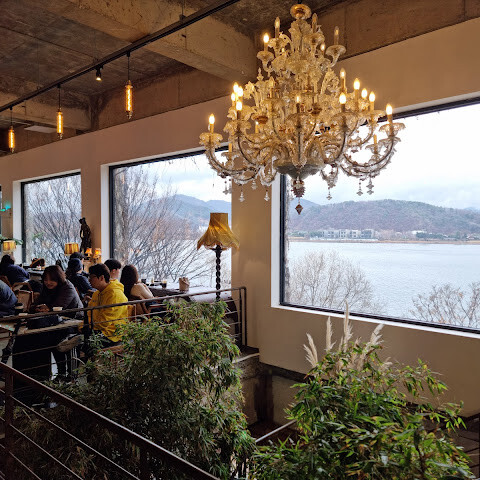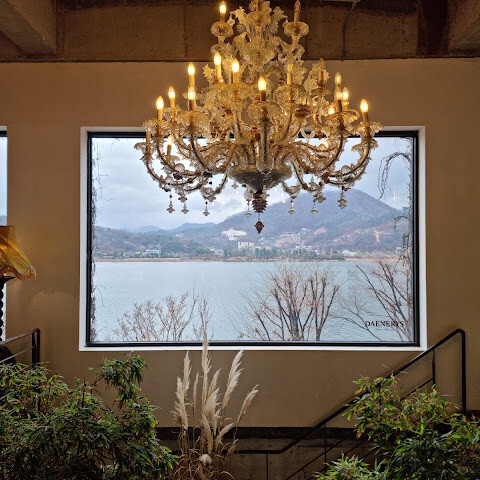 음식도 맛있었고, 푸른 나무와 꽃, 그리고 뒤로 보이는 푸른 산이 보이는 아름다운 호수 풍경까지, 분위기도 정말 멋졌어요!