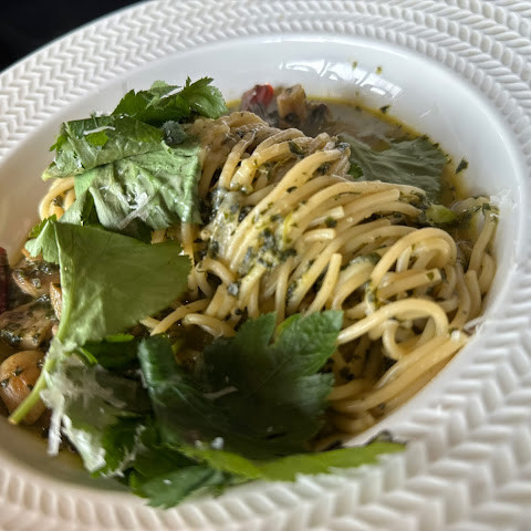 파스타는 정말 맛있었고, 향긋하고 짭짤한 소스가 입혀져 있었습니다. 어떤 사람들에게는 너무 매울 수도 있으니 매운맛을 줄여달라고 요청하는 게 좋을 것 같습니다.