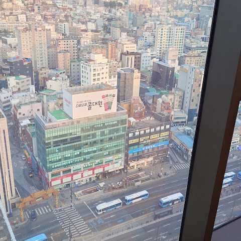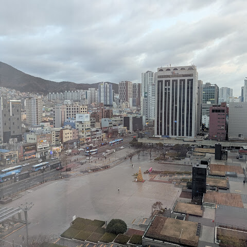 1월 23일부터 25일까지 묵었습니다. 부산 고속철도역에서 아주 가까워요. 조식은 종류도 다양하고 품질도 꾸준히 좋아서 만족스러웠습니다. 객실은 도심에 위치한 호텔인 만큼 작은 편이지만, 편안하게 지낼 수 있었습니다. 1층에는 스타벅스가 있고, GS25는 대각선 맞은편에 있습니다.