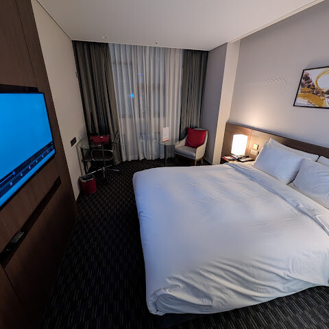 서울로 돌아가기 전날 하룻밤 묵었습니다. 호텔이 부산역 6번 출구(지하철/철도) 바로 근처에 있어서 매우 편리했습니다. 객실은 깨끗하고 편안했으며, 미국인 기준으로는 작지만 아시아 기준으로는 딱 적당했습니다. 서비스는 훌륭했습니다! 제가 밤 10시 30분쯤 도착했는데 체크아웃이 매우 신속했고, 로비 직원분들이 Viator를 통해 예약한 당일 투어에 대한 몇 가지 질문에 친절하게 답변해 주셨습니다. 짐은 나중에 KTX를 타고 서울로 가기 전에 찾으러 갔는데, 그 과정도 아주 순조로웠습니다. 이 호텔을 강력 추천합니다.