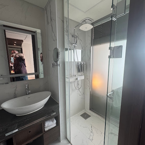 객실 및 편의시설: 객실은 깨끗하고 디자인이 훌륭했습니다. 모든 편의시설이 제대로 작동했고, 특히 욕실과 거울은 조명이 훌륭해서 화장하기에 좋았습니다.