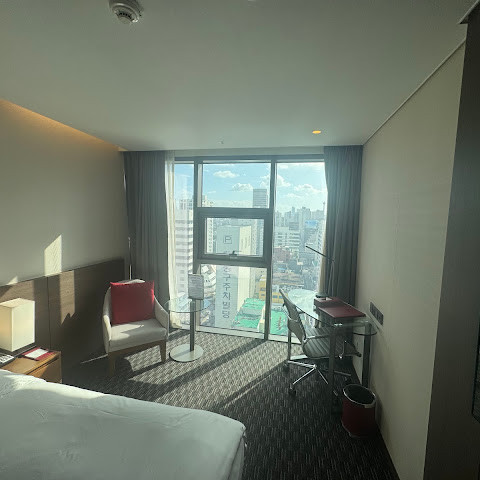 부산역 바로 앞에 위치해 있어서 교통이 편리합니다. 근처에 24시간 운영하는 식당을 포함하여 다양한 식당이 있습니다. 객실은 넓지는 않았지만 깨끗했습니다. 4박 내내 고층에 묵었기 때문에 조용했습니다. 유일한 단점은 아침에 엘리베이터를 오래 기다려야 한다는 점이었습니다.