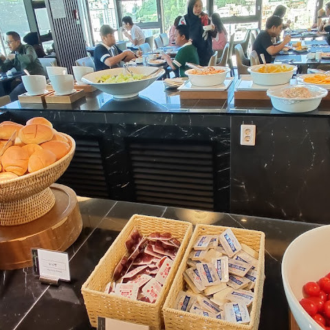 부산역 바로 옆이라 위치가 좋습니다. 근처에 많은 상점과 레스토랑이 있습니다. 안에는 스타벅스와 던킨도너츠가 있어요. 코인세탁실도 있어요. 호텔 방은 매우 어두워서 일을 해야 할 때 읽기가 어렵습니다. 화장실이 작고 문이 잘 작동하지 않아 계속 갇히게 됩니다. 샤워실 바닥이 매우 미끄럽습니다. 기차역을 바라보는 전망이 좋습니다. 프리미엄 패밀리 3인 결제했는데, 2잔만 제공됩니다.