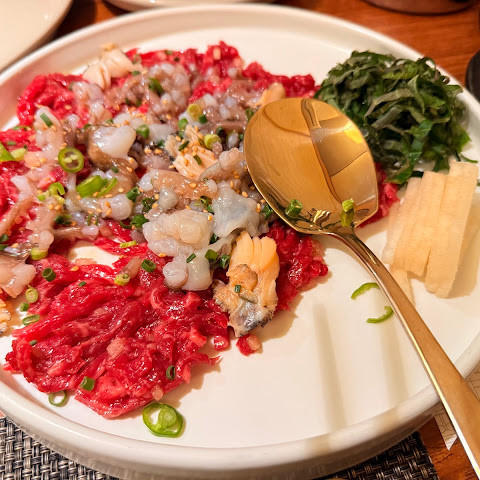 아주 즐거운 비즈니스 런치였습니다. 다양한 코스 요리를 즐겼는데, 특히 사시미 코스는 정말 훌륭해서 놀랐습니다. 소고기 코스는 예상대로 맛있었고, 사이드 메뉴도 다양했습니다. 디저트도 맛있었습니다.