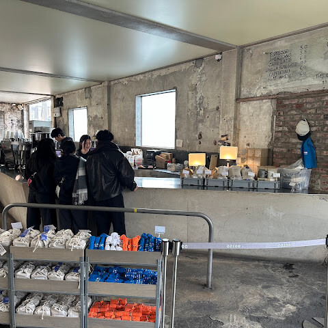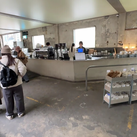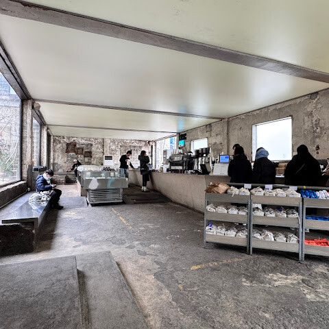오래된 건물은 산업적인 분위기를 풍기는데, 특히 비 오는 겨울에는 더욱 황량하고 쓸쓸한 느낌을 줍니다! 문을 열자마자 손님들이 몰려들어 자리를 잡으려면 한참 기다려야 합니다. 테이블과 창가 하나하나가 그 자체로 풍경이라 사진 찍기에 완벽합니다! 음식도 아주 맛있고, 커피 원두와 기념품도 구입할 수 있습니다!