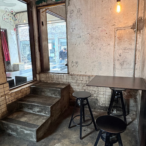 개점 후 두 시간 안에 도착했는데, 고른 페이스트리는 신선했고 커피와도 잘 어울렸습니다. 하지만 분위기는 제 마음에 들지 않았습니다. 카페에서 의도한 콘셉트는 알겠지만, 예상보다 낡고 관리가 안 된 느낌이었습니다. 우리가 앉았던 긴 테이블에는 마른 커피 얼룩이 여기저기 있었고, 벽은 더러워 보였으며, 몇몇 의자는 울퉁불퉁했고, 화장실도 꽤 지저분했습니다. 옥상에도 탁 트인 공간이 있었는데 좋아 보였지만 그날 너무 추워서 들어가지 못했습니다 (그리고 가파른 계단을 조심하세요). 전반적으로 음식과 서비스는 좋았지만, 분위기는 그다지 만족스럽지 못했습니다.