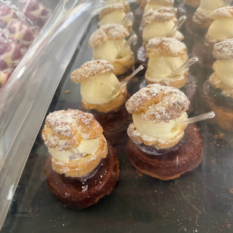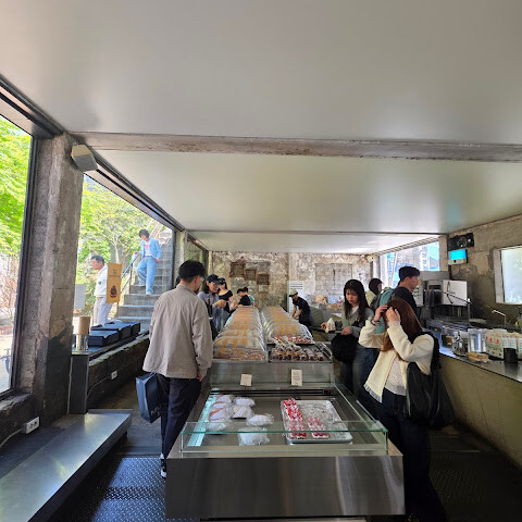 샤인 머스캣은 달콤했고, 생크림은 아주 가벼웠습니다.<br><br>안셀 슈슈 "ICE".<br>캐러멜라이즈드 브리오슈 베이스에 신선한 수제 아이스크림을 얹은 슈크림 퍼프입니다. 달콤함과 짭짤함이 독특하게 어우러져 바스크 치즈케이크를 떠올리게 했습니다. 정말 맛있습니다.<br><br>판도로는 마치 아이싱이 듬뿍 얹힌 부드러운 카스텔라 케이크 같습니다. 좀 너무 달긴 하지만, 이건 빼도 될 것 같습니다.<br><br>앉아서 담소 나누기 좋은 곳이에요.