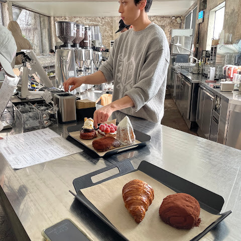 NAVER에서 8:00 오픈이라고 썼기 때문에 9:00경 내점했습니다. Google 지도에는 10시라고 쓰고 있기 때문에 모릅니다만, 10시에 갑자기 손님이 늘어나 자리가 없어진 인상입니다. 커피가 약하기 때문에 언제나 홍차를 부탁합니다만, 여기는 달콤한 것 밖에 없어서 유감이었습니다. 크로와상은 달콤해 보이지만 너무 달지 않고 뻣뻣하게 먹어 버렸습니다. 손님이 일본인뿐이었기 때문에 현지의 한국감을 느끼고 싶은 사람에게는 그다지 추천하지 않을까.