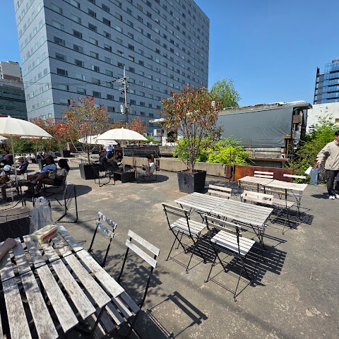 아침 식사를 먹으러 처음으로 성수동에 가서 유명한 이쪽의 가게에 들렀습니다.<br>주문시 번역 도구에 일본어로 말을 걸고 있으면, 금전 등록기의 오빠는 일본어가 능숙하고 부끄러운 생각을 했습니다.<br>샌드위치와 브라우니와 뜨거운 커피를 주문했습니다.<br>실내는 만석이었기 때문에 옥상으로 갔습니다.<br>착석과 함께 참새가 엄청 모여 오고, 틈이 있으면 빵을 노려 옵니다.<br>동행자는 새가 약하기 때문에 트레이를 잡은 채 서서 먹고 있었지만, 나는 손에서 빵을 먹을 정도로 그리운 참새가 귀엽고 치유되었습니다.<br>옥상으로의 계단은 가파르고 좁기 때문에, 조금 무섭지만, 기분이 좋기 때문에 추천입니다.
