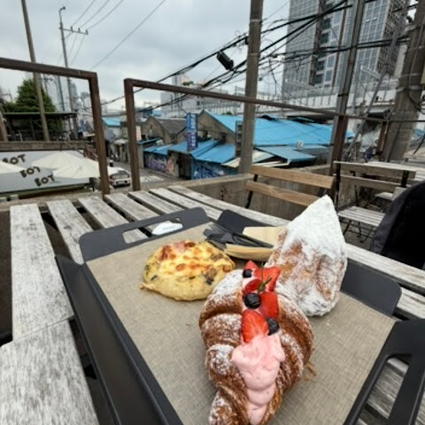 한국식 핫도그 빵은 정말 맛있었고 꼭 한번 드셔보세요.<br><br>초록색 크루아상과 딸기 타르트는 달콤했지만 너무 달지 않아서 강력 추천합니다.