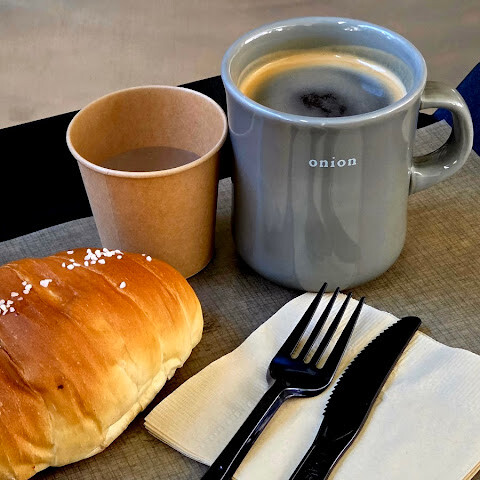 카페 어니언 지점은 페이스트리 종류가 다양해서 좋았습니다. 커피도 맛있었고, 카드 결제도 가능했어요. 트레이를 받아서 페이스트리를 고르고 카운터에서 계산한 후 자리에 앉으면 됩니다. 커피가 나오면 진동벨을 주더라고요. 건물 구조도 원래 모습을 잘 살려서 마음에 들었습니다.