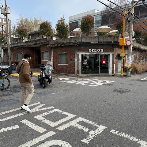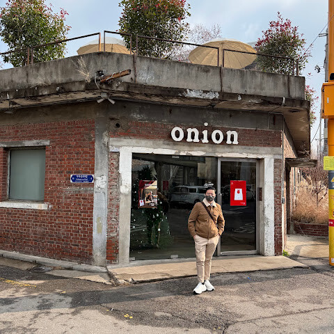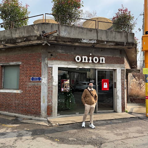 성수동역 근처에 있는 가게예요. 오래된 창고를 개조해서 만든 거라 특별히 눈에 띄는 인테리어는 없어요. 서울 곳곳에 지점이 많은 유명한 어니언 체인점 중 하나예요. 아메리아노랑 유명한 판도로 케이크를 먹어봤는데, 케이크 카운터는 정말 멋진데 케이크가 너무 커서 혼자 먹기 힘들어서 안 샀어요. 한 접시당 5,000~7,000원 정도!